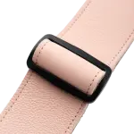 Features: garment leather face, suede backing, tri-glide adjuster, reinforced stitching, soft pink finish.